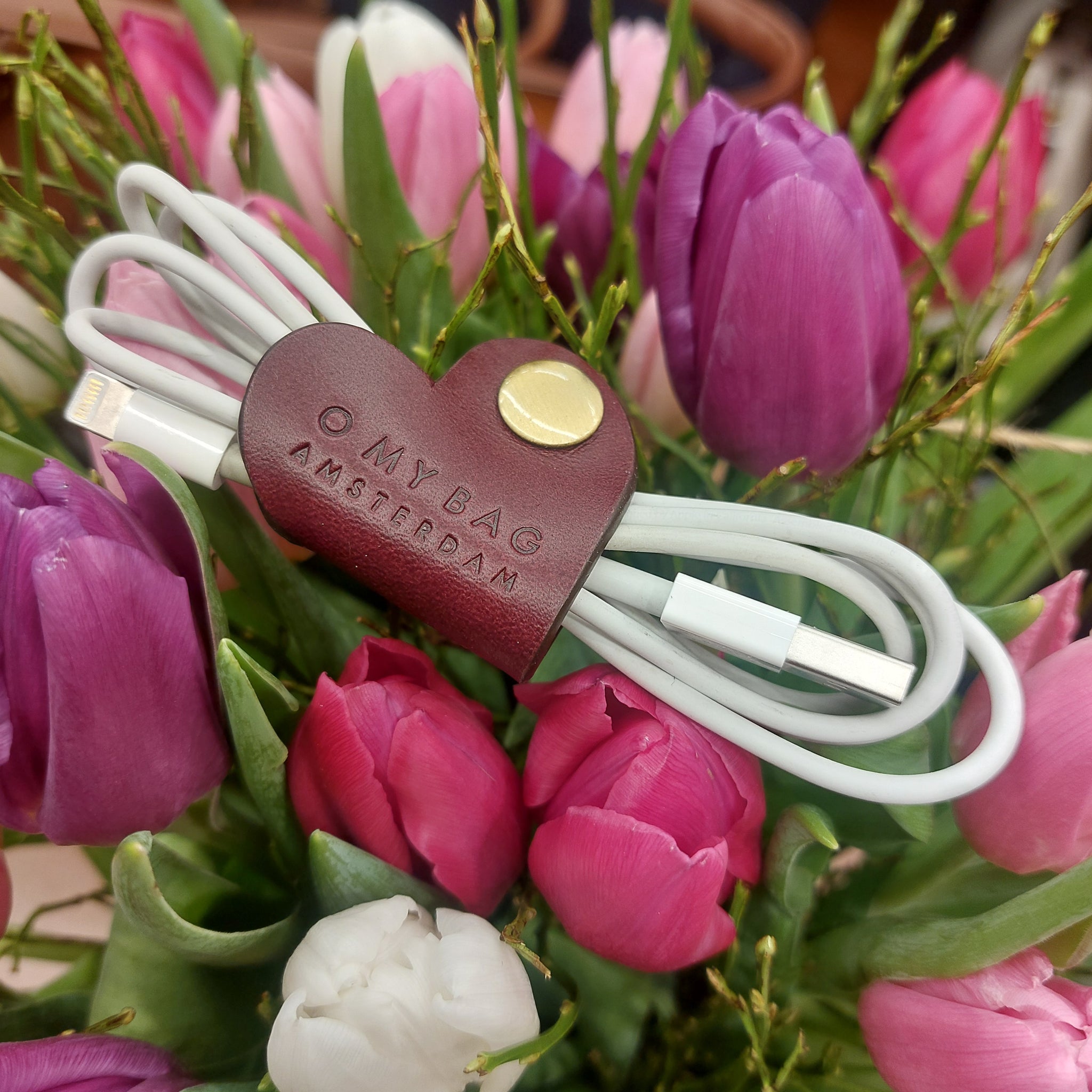 Dit handige accessoire houdt het snoer van je oplader of oortjes goed bijeen, waardoor je het goed kan op bergen. Het is van leder, natuurlijk, en heeft de vorm van een hartje.