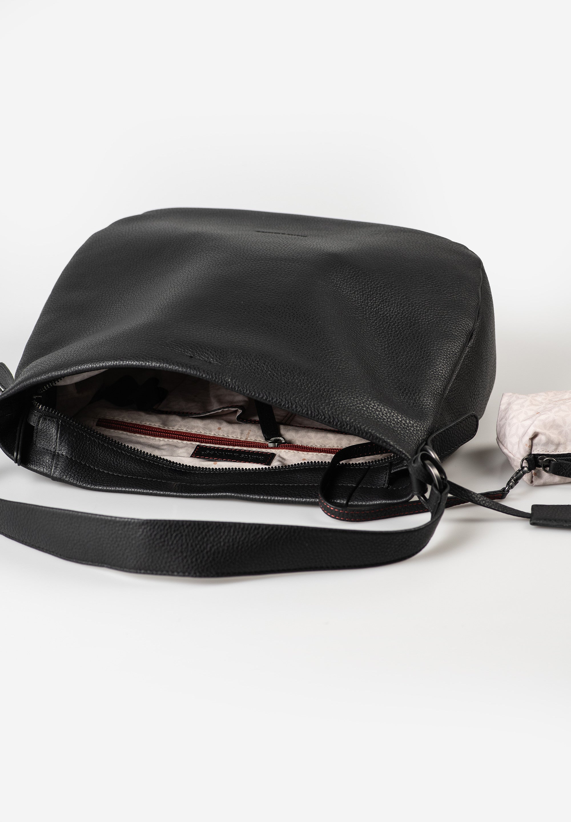 Het ruime hoofdvak biedt plaats aan A4-formaat documenten of tijdschriften en is voorzien van meerdere binnenvakjes, een sleutelkoord en een uitneembaar leren tasje voor kleine essentials. Zo blijft alles overzichtelijk en binnen handbereik.
