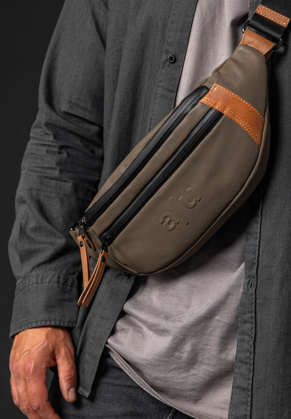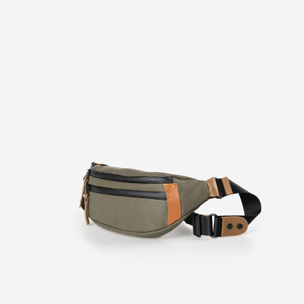 Dit lichtgewicht riemtasje is gemaakt van sterk waterafstotend katoen. Ze heeft een lichte coating die er na verloop van tijd gepolijst gaat uitzien. Ook de ritsen zijn waterdicht. Er zijn 3 vakken die afsluitbaar zijn met een rits. Je kan deze tas schuinover voor je dragen of een stuk van de riem afdoen zodat je het als heuptas kan dragen. De binnenkant is van nylon en de details in volnerf leder vervolmaken de afwerking.