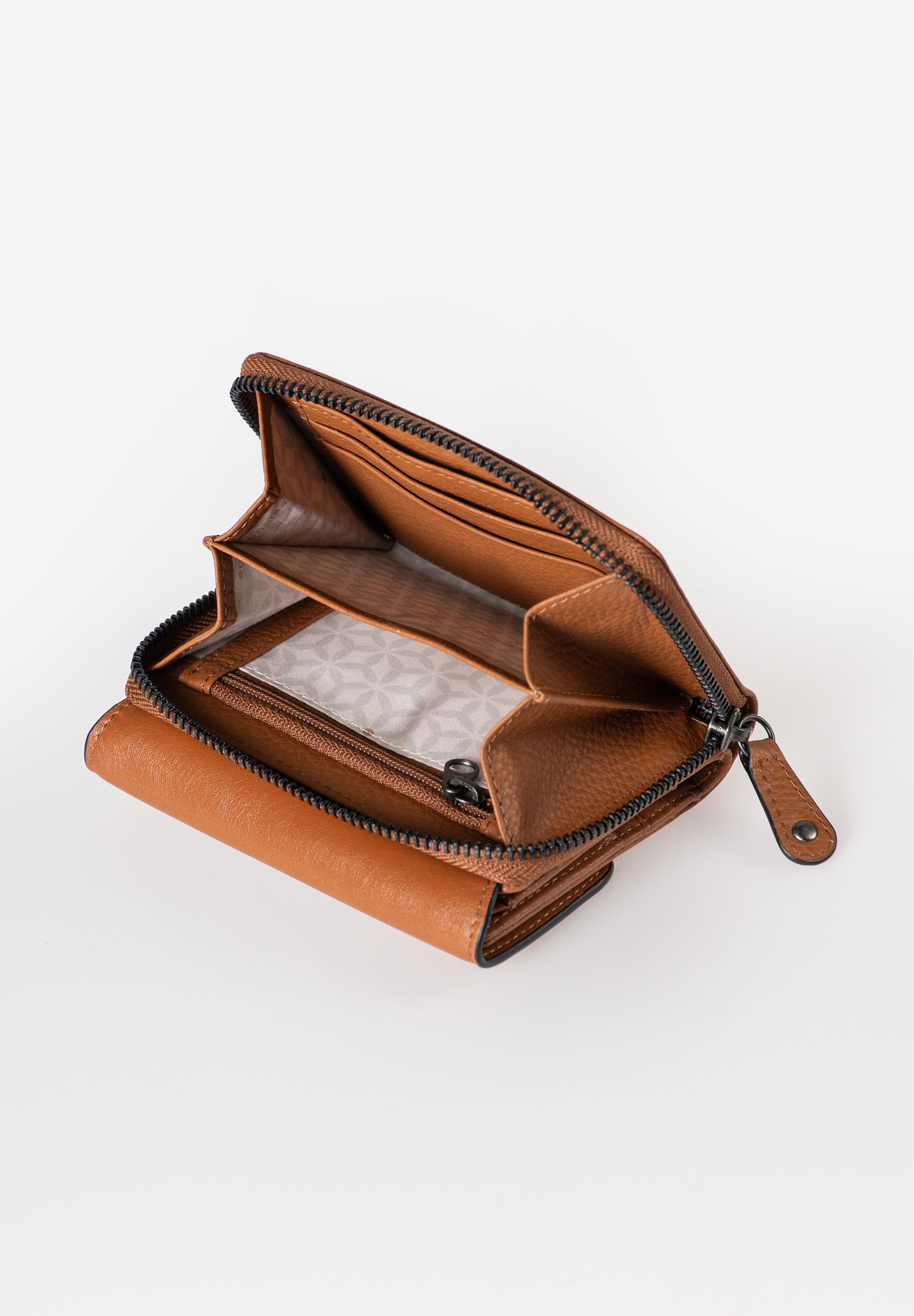 De ‘Celia’ is een compacte en elegante leren portemonnee die je pasjes, briefgeld en muntgeld veilig en overzichtelijk bewaart. Dankzij het slimme design heb je al je essentials altijd bij de hand – netjes geordend en direct toegankelijk: