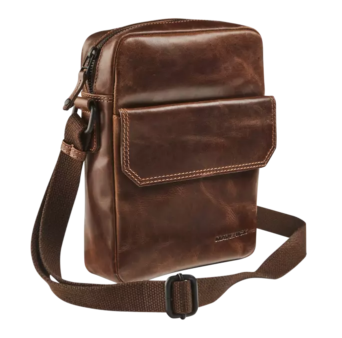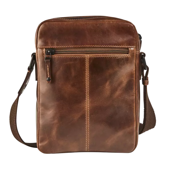 Deze tas in plantaardig gelooid volnerf, oily pull-up leder is geschikt voor dagelijks gebruik. Ze sluit af met een rits en heeft nog een voorzak met een overslag.