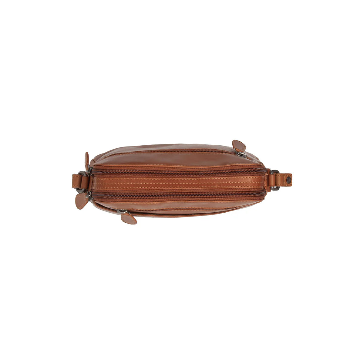 Deze lederen schoudertas van The Chesterfield Brand is een compact tasje en heeft veel ritsvakken. Er zijn 2 hoofdvakken afsluitbaar met een rits, er is een ritsvak langs de voorkant en ook nog eentje aan de achterkant. Er is genoeg plaats voor de meest noodzakelijke dingen zoals een portemonnee, je smartphone, eventueel een briletui en al je kleine persoonlijke spullen. De lange riem is aanpasbaar dus je kan ze zowel op de schouder als crossover dragen.