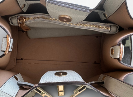 Het gestructureerde design wordt verfijnd door een decoratief riem met slotje en een stevige, vormvaste bodem, waardoor de tas niet alleen elegant oogt maar ook praktisch is in gebruik. Dankzij haar tijdloze uitstraling en veelzijdige stijl is deze handtas perfect te combineren met zowel een casual als een chique outfit.